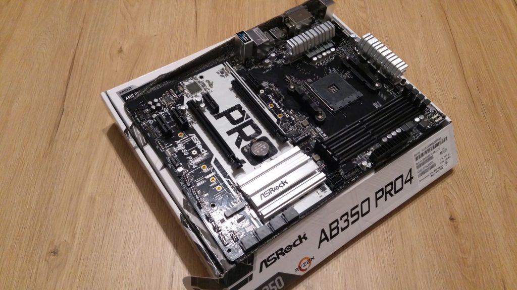 Płyta po prostu nie mogła być z najniższej półki. Wybór padł na ASRocka AB350 PRO4. Ma wszystko co potrzeba, w tym 4 gniazda na RAM, a nie 2 jak w tych najtańszych modelach. Nawet posiada gniazda m.2 na dyski. Nie ma się tu czym zachwycać, ani też czego się czepiać tej płyty.