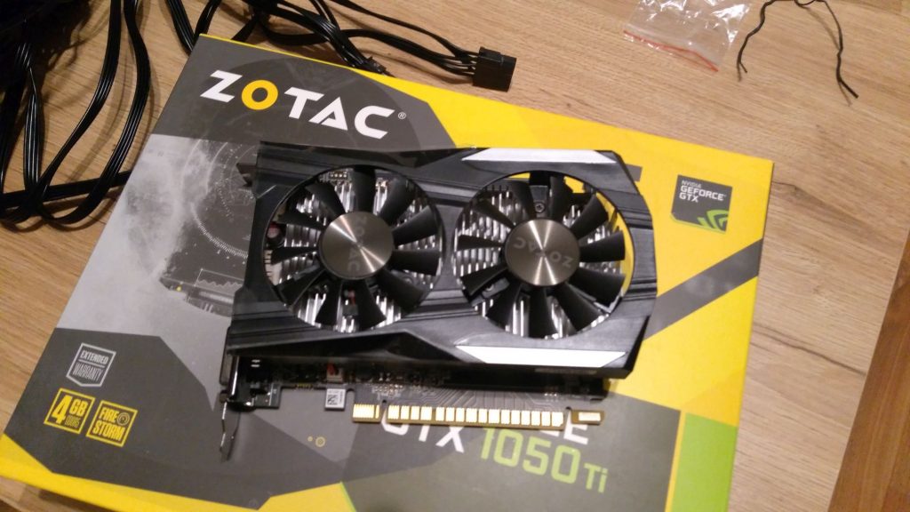 Od samego początku miał być GTX 1050 ti, no i jest. Wersja od Zotaca. Oczywiście ta karta nie posiada wyjścia VGA ani DVI z opcją użycia przejściówki, więc trzeba podłączać ekran przez DVI, DP lub HDMI.