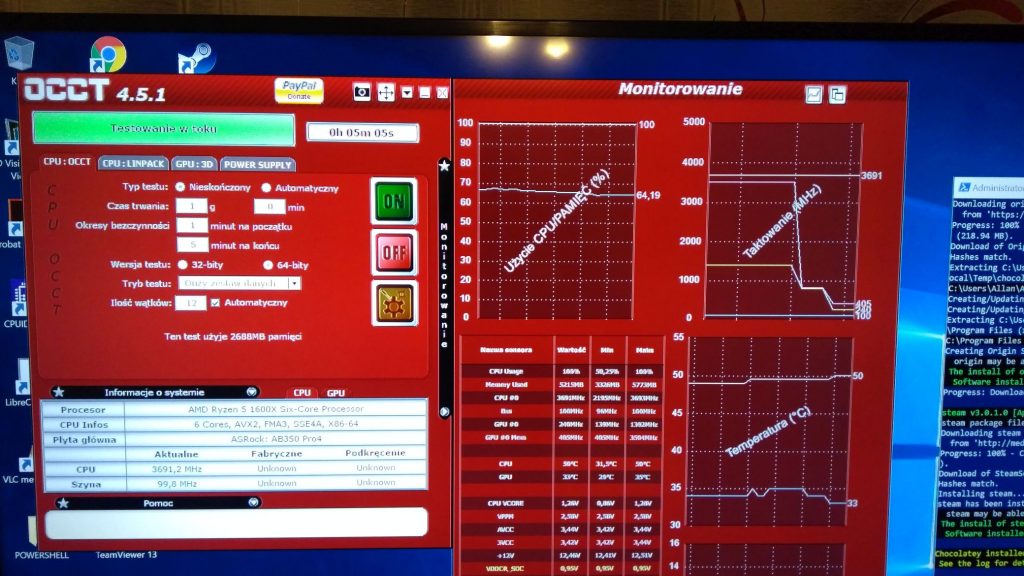 i podczas testu, kiedy procesor był obciążony na 100%