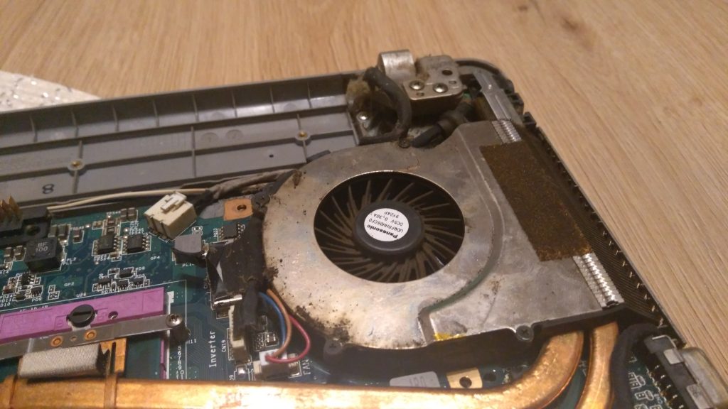 – laptop nie był dawno czyszczony, a dodatkowo hałasuje wentylator.