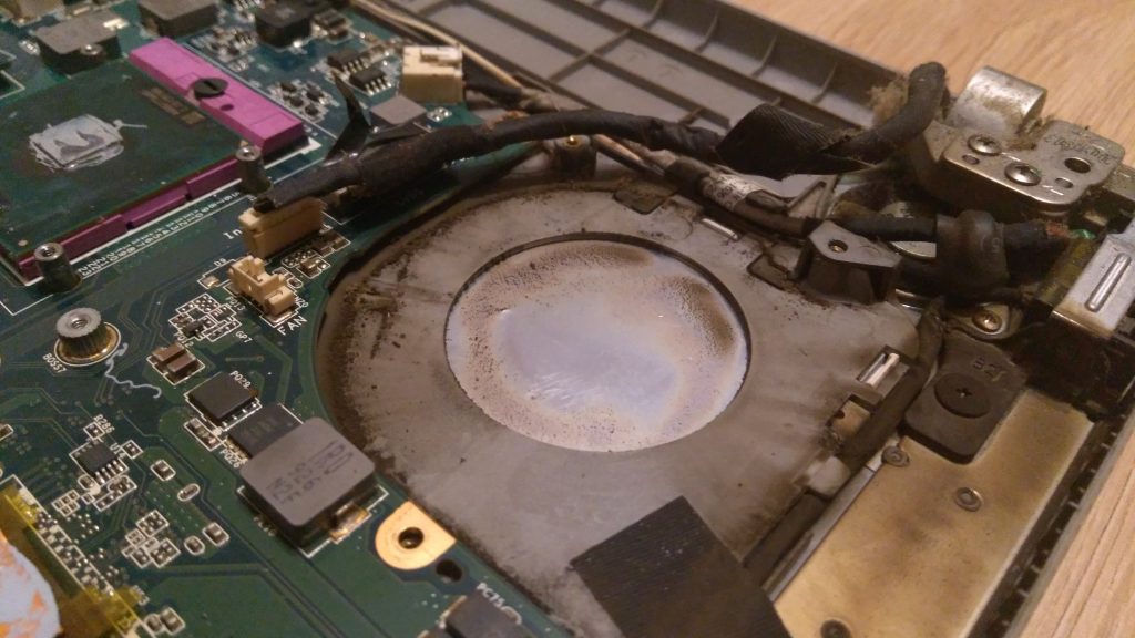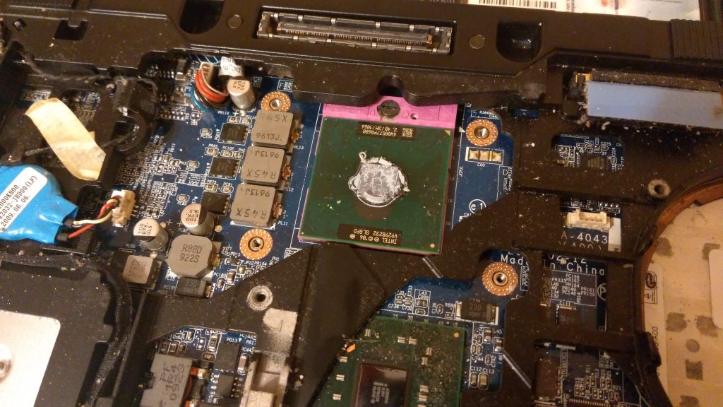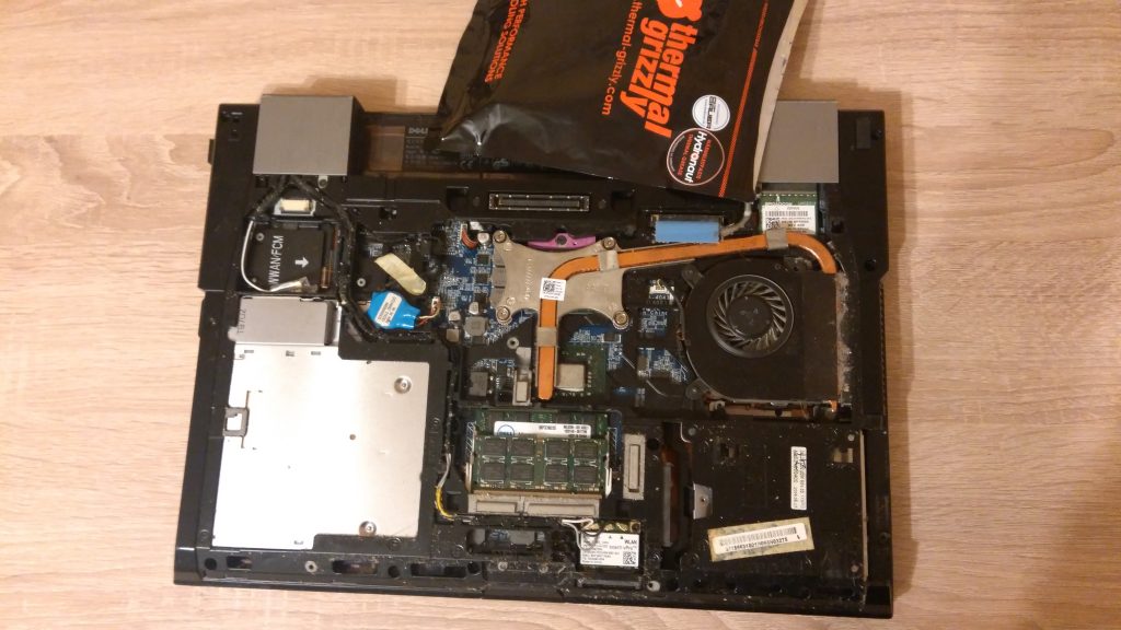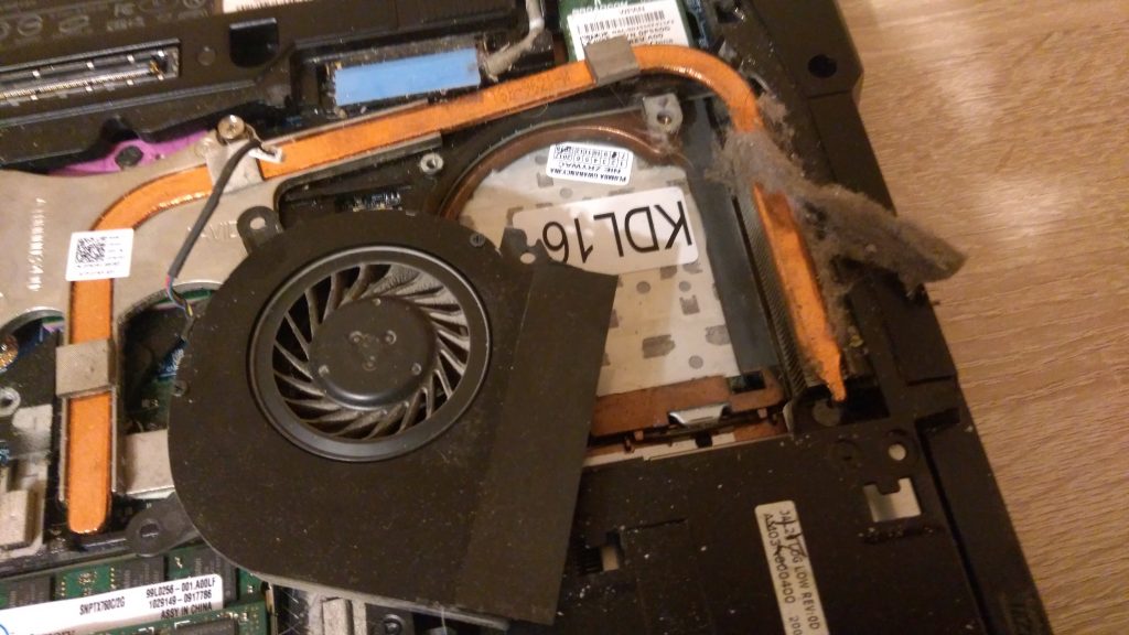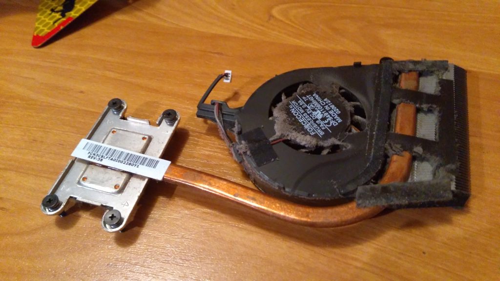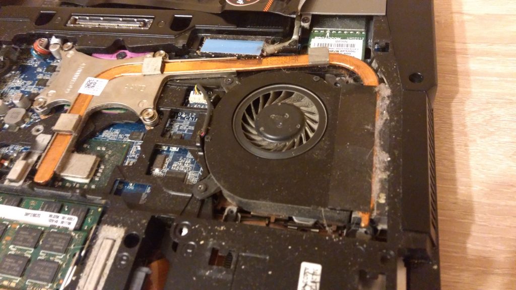 W tym przypadku standardowa czynność, czyli rozbiórka laptopa, demontaż chłodzenia, pozbycie się kurzu (na szczęście tylko kurzu), zmiana pasty i złożenie całości.